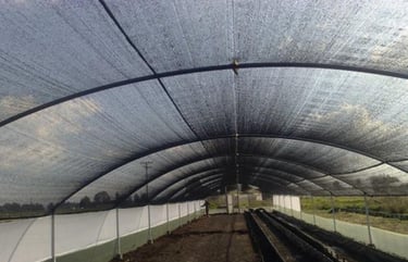 Material resistente que protege cultivos y ayuda a controlar el clima agrícola.